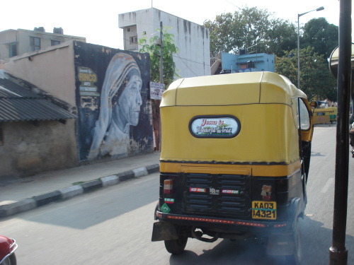 When I returned to Bangalore I decided to venture out in an auto rickshaw by myself to run a few errands and see the city (see photo gallery below). I’m struck by all of the amazing colors surrounding me in people’s clothes and on Hindu temples, of course, but also the colors of homes and other buildings. It is also more green than I had imagined, especially given the size and population density of the city. As I travel around and through this city most of the land seems to be occupied by either the Indian army (Bangalore was a garrison town for the British when they colonized India) or various foreign (and largely American) churches, which are actively proselytizing Indians, and as a result, are eroding the cultural landscape and traditional practices. It’s like there are visible remnants from the colonial days of the Bible in one hand and the sword in the other. You can see this in various ways just in my neighborhood: the pork shop across the street from the mosque; the use of names like Nazareth (see photo below with name on house gate), Hebron, and even shalom, by evangelical Christians. I think I’ve seen even more churches in the past couple of days than I did when I lived in Accra, Ghana, which is a bit surprising.