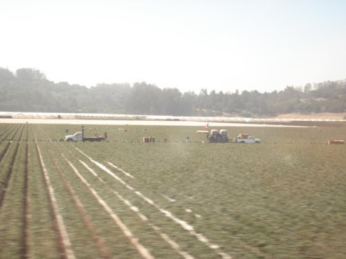 I thought a lot about the farm land and farmworkers I watched as my train passed by. This was, of course, not hard to do give how much agribusiness is in the heartland of California. It made me think of the Delano Grape Boycott organized by César Chávez throughout much of my childhood. It also made me think of the important ballot initiative in the upcoming election and California’s Proposition 37, which would require food producers to label all GMOs used in their products.