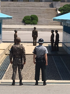 By the way, I really meant Korea in the last paragraph. Yes, North Korea plays such a big role in this novel that one could almost call the book prophetic when you consider recent developments in the news. One of the best sequences in the book takes place in the Demilitarized Zone, or DMZ that separates North from South Korea. Is a border like no other, infested with barbwire, land-mines and even aggressive guards. The author graciously shared these pictures.
