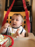 Here’s him with both his cakes. By the second party, they had wised up and just let him eat wearing only his diaper.