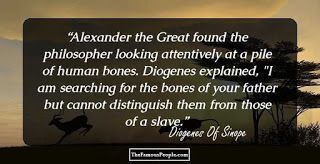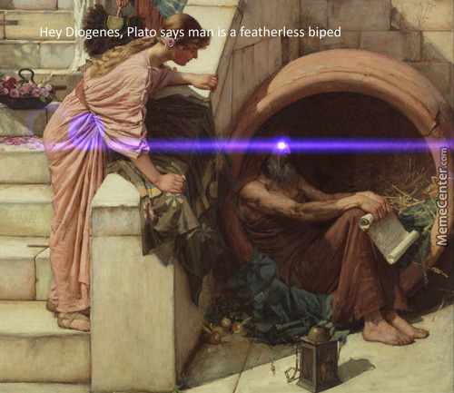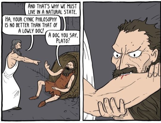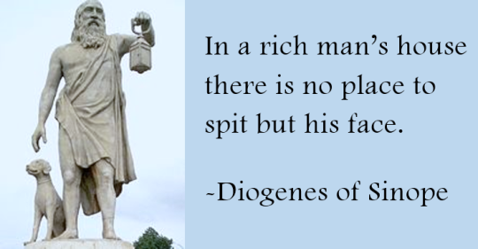 Diógenes said you couldn’t spit anywhere but in the face of a rich man because once this rich dude invited him into his house and literally told him you can’t spit on anything that touches the floor so Diógenes spit in this guys face