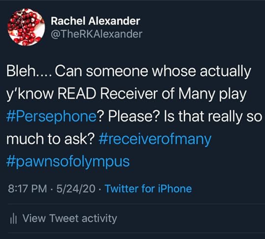 Receiver of Many and Destroyer of Light by Kate Alexander @therkalexander (Retelling of Persephone and Hades story, very adult)