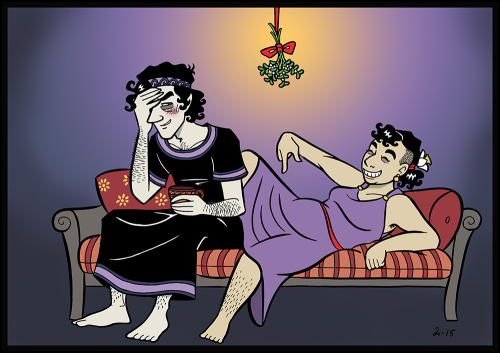 Persephone: “Hey, Hades. Look who’s under the mistletoe.”