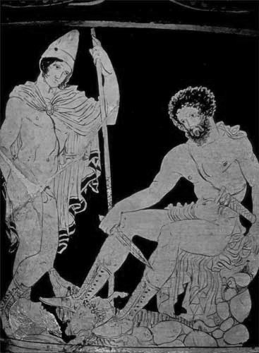 Odysseus consulting the dead prophet Tiresias in the Underworld