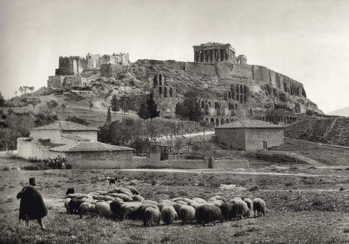 Man herding his sheep in the shadow of the Acropolis, early 1900s. This photograph was taken by the Swiss photographer Fred Boissonas. Mister Boissonas is known for his incredible photographs of ancient Greece and it’s beautiful nature. The Acropolis of Athens is an ancient citadel located on a high rocky outcrop above the city of Athens and containing the remains of several ancient buildings of great architectural and historic significance.