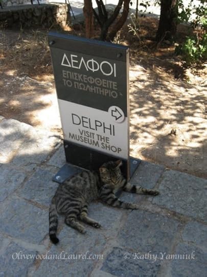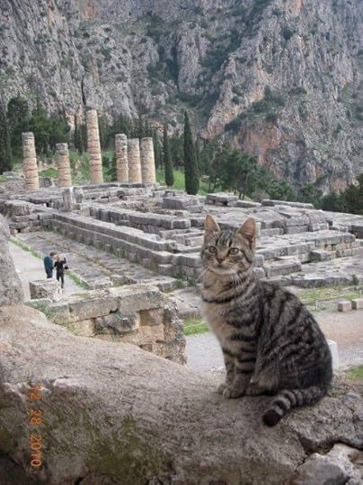 So I just wanted to inform people that if you go to the temple to Apollo at Delphi where the oracle at Delphi was situated there are cats, like everywhere and they are so placid I spent most of my time there with a kitten in my arms, Greece is honestly a great place for cats and if anybody is going the or near there and likes cats you should really go, not only is it a beautiful historical place it’s also full of cute fluffy balls of fun