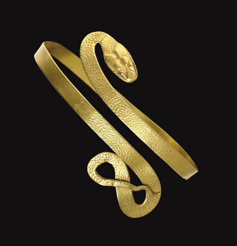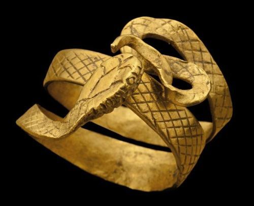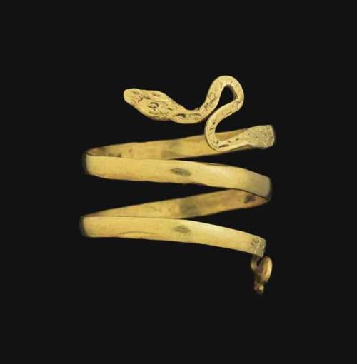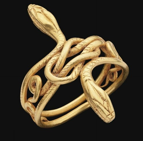 Gold snake rings. Snakes were a common motif in jewelry during Roman times. They were associated with healing and the god Asclepius, with protection, as well as resurrection, and immortality.