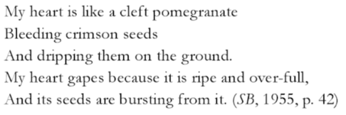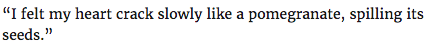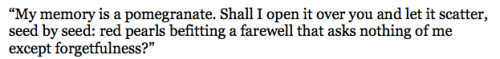 Amy Lowell, Sword Blades & Poppy Seed: Miscast II, // Adrian Borda, Broken heart still alive // Trebor Healey, A Horse Named Sorrow // Mahmoud Darwish, In the Presence of Absence // William Bouguereau, Girl with a pomegranate // Alexis Bates & Logan February, Pomegranate