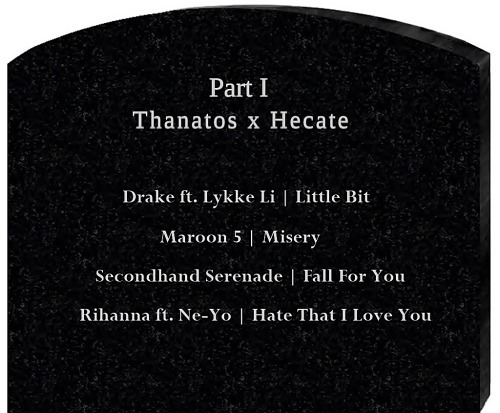 A mini playlist dedicated to all the sinking ships involving Thanatos, the God of Death. A moment of silence, please. Also, fellow Thanatos x Hecate shippers, where y’all at?Listen HERE