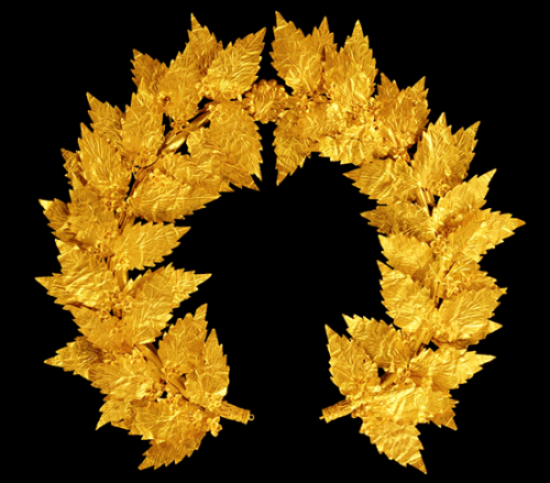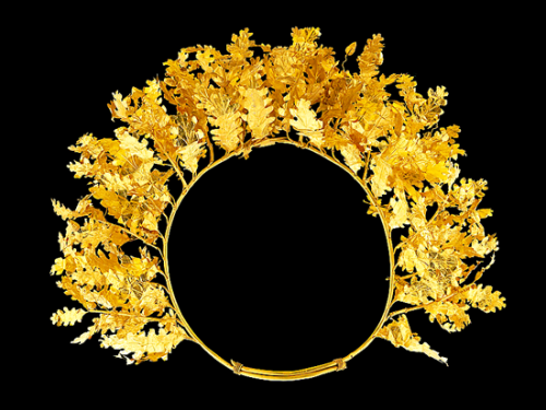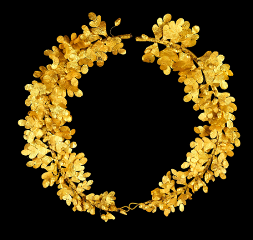 2) Gold Wreath of Oak Leaves from the Royal Tombs of Aigai. 4th Century BCE. The Louvre.