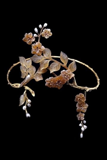 Art nouveau tiara, ca. 1900, by Paul Lienard of Paris. Gold, carved horn, pearls, diamond pistils.
