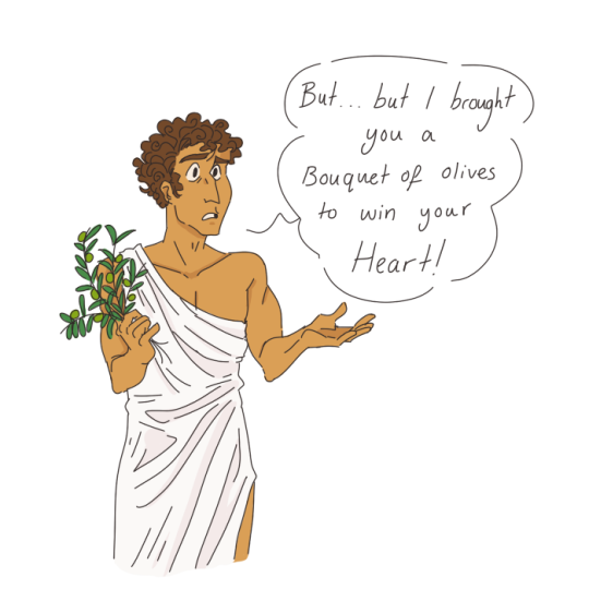 Greek dude: But…but I brought you a bouquet of olives to win over your heart!