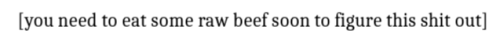 And yes, I will be eating raw meat for accuracyâs sake. These are the lengths I go to for you, dammit youâre welcome.