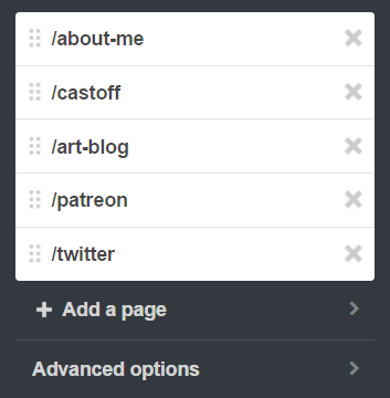 For this example, let’s say I want to link to my Twitter page. I’ll name the page “Twitter” (this is what the redirect URL will end up being- IE yourblogname.tumblr.com/Twitter), and insert my Twitter URL under the “Redirect To” tab. Leave “Show a link to this page” turned off. (Unless you want the link to show up on your blog, in which case, turn it on. Do what you want, I’m not your mom)