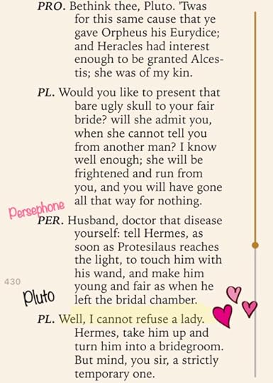 In my Spanish translation is even cooler because he says “Well, since Persephone agrees…” implying that he needs her authorization to decide.