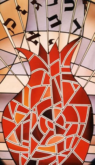 Pomegranate stained-glass window in the Abraham Heschel School synagogue. Made by