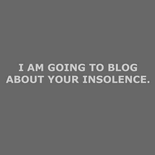 Brian's Maybe? T-shirt is available again for the first time in a few years, and — in honor of the Blogger's recent return to the strip — I've added a new shirt with the Blogger's popular line, "I am going to blog about your insolence." Both design (like all of my T-shirts now) are printed on demand by Threadsafe.