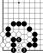 The first move sort of jumps out at you, but the rest takes awhile to really work through. White has some liberty problems, so he has to connect at 4. What you have to see is that if White captures 5 directly then Black can come under.