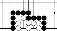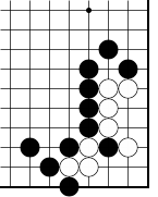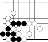 Black to play This one is a lot easier than the one we did last week. I thought you might want a breather. You'll have to find the correct tesuji to save Black's corner group, because it cannot make two eyes. Here's a hint: to save it, you'll have to capture some of your opponent's stones.Solution to last week's problem: