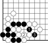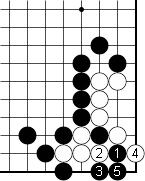 If you saw Black 1, then pat yourself on the back. It's the correct move and the tesuji to remove White's eye. What happens if White takes? Black 3 is a way to come under since White lack's the liberties to cut us.