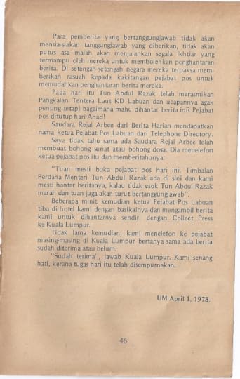 INI ADALAH SEBUAH LAGI PETIKAN DARI BUKU " PERTAMA DAN TERAKHIR" TENTANG ILTIZAM,DEDIKASI DAN MINAT PADA WARTAWAN DI ZAMAN LALU DALAM MENJALANKAN TUGAS MEREKA.