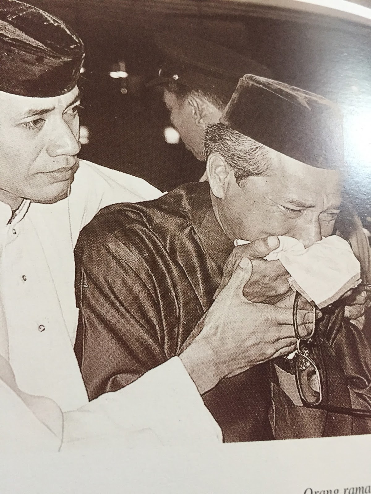Seorang rakyat biasa yang tidak dapat menahan kesedihannya ketika menziarahi jenazah Allahyarham Tun Abdul Razak di Masjid Negara( Dari buku Tun Razak Jejak Bertapak Seorang Patriot oleh Zainuddin Maidin )