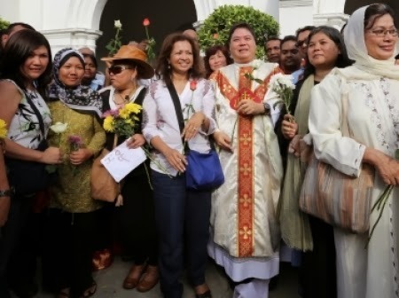 of Lourdes, Klang.Anak perempuan mantan Perdana Menteri, Tun Dr. Mahathir Mohamad, Datin Paduka Marina Mahathir menyampaikan bunga sebagai tanda sokongan dan perpaduan kepada Paderi Michael Chua dan masyarakat Kristian atas pendiriannya meneruskan penggunaan ka...