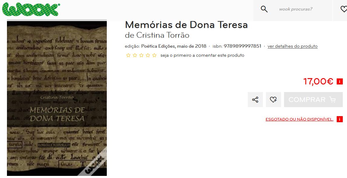 As Memórias de Dona Teresa podem não estar à venda na Bertrand e na Wook. Mas vão estar com a luxemburguesa Librairie Pessoa, no 19e Salon du Livre et des Cultures du Luxembourg, em 1,2 e 3 de março.