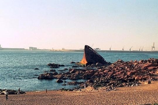 Durante cerca de vinte anos, este pedaço de petroleiro permaneceu encalhado mesmo em frente ao Forte de São Francisco Xavier, vulgo Castelo do Queijo, no Porto, tornando-se um ícone involuntário da cidade. Note-se que esta fotografia, alegadamente tirada nos anos 1990, apresenta a proa já sujeita a duas décadas de erosão marítima (mesmo assim, de um tamanho considerável, se compararmos com as pessoas que andam pela praia, à esquerda). Eu ainda me lembro dela bem maior, como uma parede bizarra, que, sob determinado ângulo, nos impedia a visão para o mar aberto. Mais do que uma parede, a proa apontada ao céu dava-me a ideia de que um enorme navio estava prestes a surgir das profundezas do mar (sensação só percebida ao vivo, em frente da proa, tal como ela se apresentava nos anos 1970; infelizmente, não tenho nenhuma fotografia).