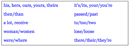 Be careful with it’s and its! A good trick is to remind yourself that the possessive of it is like his: no apostrophe.
