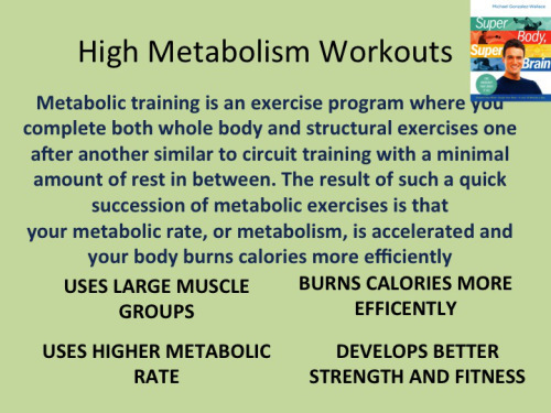 Generally speaking, metabolic training is an exercise program whereby you complete both compound and structural exercises one after another with a minimal amount of rest in between. The result of such a quick succession of metabolic exercises is that your metabolic rate, or metabolism, is accelerated and your body burns calories more efficiently. The effects are clear: not only you are targeting the muscle you are working (biceps) but also different muscles in your body and eventually your heart and your brain.