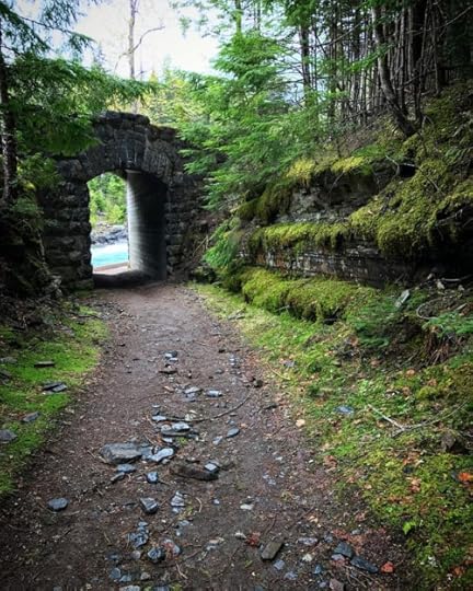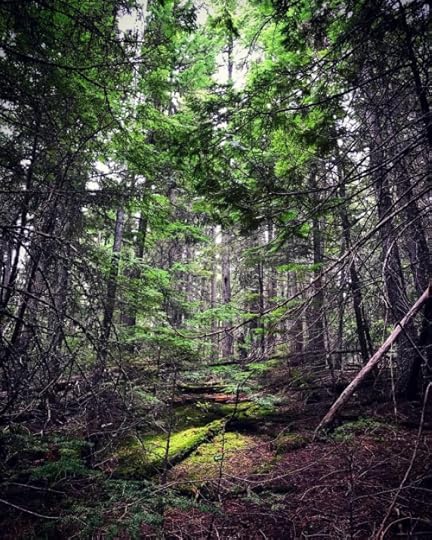 I find dark, dense woods frightening–which is of course why we frequently end up in them. This was on a day full of rain, too. Moody for daaays. (That thing in his hand is a giant can of bear spray.) #GlacierNationalPark