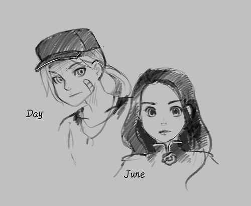 Some WIP fanart for the YA novel Legend, by Marie Lu! I’m planning to color in these headshots, and then make go run with these designs to make a full page illustration if it goes well. :P