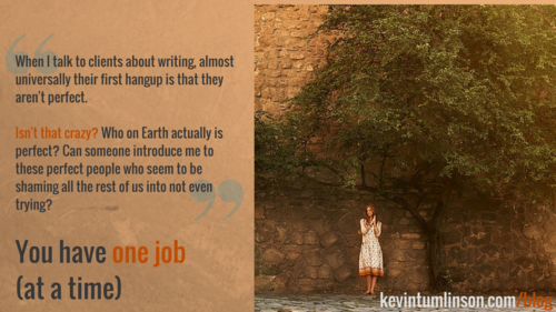 You have one job (at a time)When I talk to clients about writing, almost universally their first hangup is that they aren't perfect.
