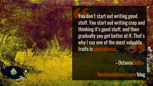 You don’t start out writing good stuff. You start out writing crap and thinking it’s good stuff, and then gradually you get better at it. That’s why I say one of the most valuable traits is persistence.