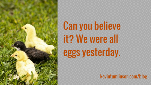 Take stock of what you have. Look at your resources, your inspirations, your insights. List it out, and look it over from top to bottom. And do that again, when you start feeling that things are too heavy, and that you don't know how you'll go on. Remind yourself that you were an egg yesterday. Now get crackin'.