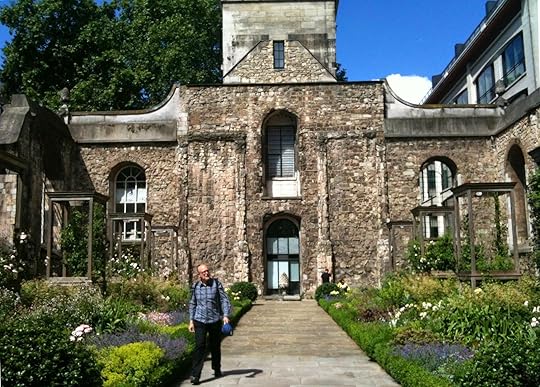 Remains of the nave of Christchurch Greyfriars - bombed in world War 2with plants instead of pillars