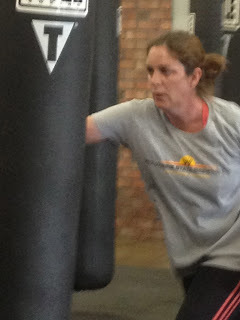 I still go to Bikram yoga off and on but have not been as committed to it as I once was. But then, I got contacted by a gal down the street from the brewery with Title Boxing Club. Boxing. Yeah. I don't watch it, and never made it through the first half of Million Dollar Baby (I know how it ends, of course. It's a dangerous sport, boxing).