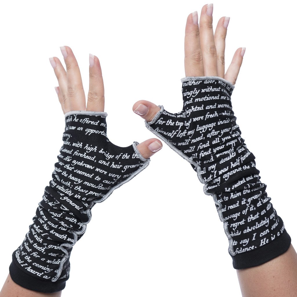 How about some writing gloves? Get Dracula and other classic and horror story excerpts on these gloves at Storiarts. $26.