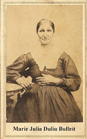 As I mentioned above, I had no use, back then, for old family stories; with one exception. According to family legend, my great-great grandfather, Augustus Bulleit, made a living transporting “produce” from his farm in Southern Indiana down the Ohio and Mississippi Rivers on a flatboat. He sold his “produce” all the way to New Orleans until, during a fateful trip in 1860, he disappeared. Although some of the “produce”, along with his boat, was recovered, no trace of him, or his remains, was ever found.Lots of speculation surrounded his disappearance. Did he simply vanish into the streets of New Orleans to escape the responsibility of providing for five children (four additional children died in infancy) and a wife, Marie Julia, who had a somewhat less than sparkling personality? (See for yourself!) Or... was he murdered for a boat full of corn and soybeans? That sounded implausible, even when I was a 10-year-old!