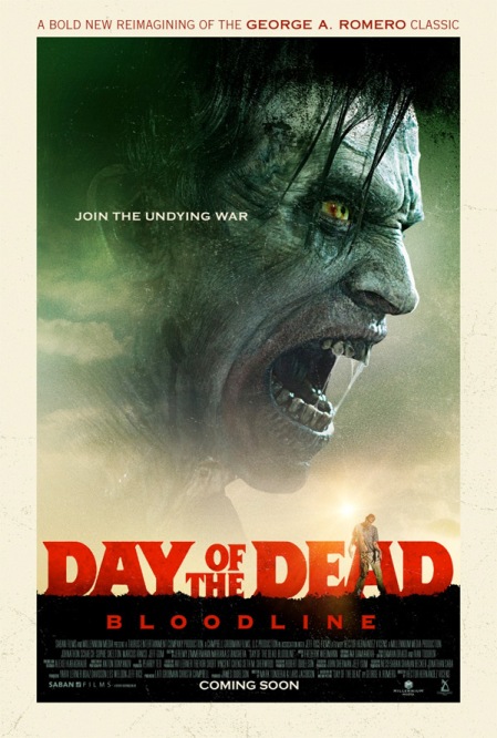 Looks like a remake is coming out of George Romero's Day of the Dead: Bloodline, originally released in 1985. Firstshowing.net describes it as "a group of military personnel and survivalists living in an underground bunker while trying to survive the zombie apocalypse." The site isn't too enthusiastic about the movie being good, but ? If anything the poster is cool. See on YouTube or check the preview below.