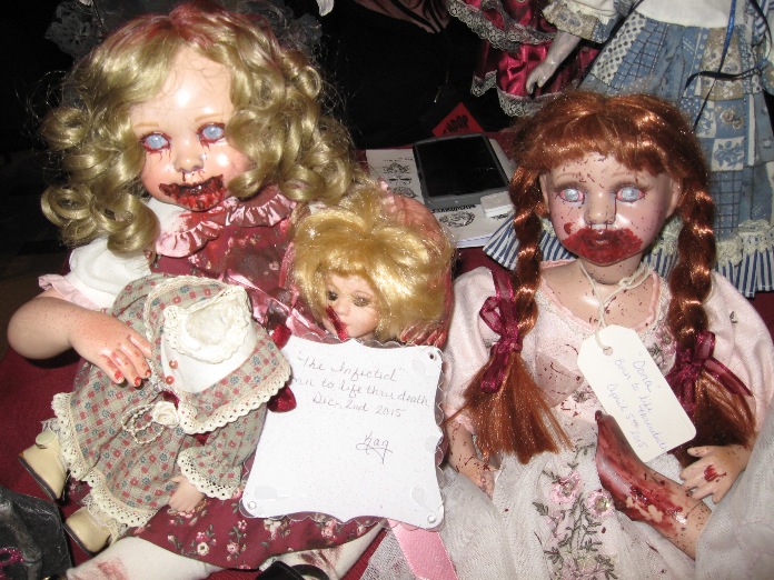 Also met up again with Kelly from Dollface Inc. She does an amazing job in repainting and dressing dolls to give them a "new life" as undead dolls. Here are a couple pix of her unique dolls. I'll have more soon and a feature about her!