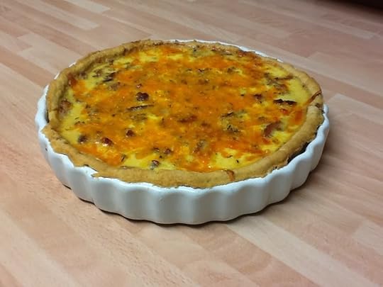 3. Turn the dough onto a floured worktop, and roll out. It should cover the dish which you are baking the quiche in.