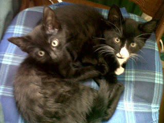 Sooty (left) and Bilbo (right).For those wondering, this was the tale of my kittens, Bilbo and Sooty, and their first trip out into the garden. I have of course taken liberty with the story, and of course, there is no harming of animals in reality!