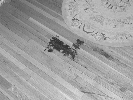 As she sat at the table the spot stared back at her. There was still a residue left from the soap making the splotch look like the blood she had mopped up. Her fingers were still raw and aching from scrubbing the dark stain. The residue of the life she had only a few hours ago.