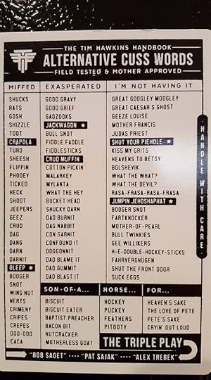 Geeze louise there's a lot of ways to swear!Writers have a tendency to get hooked on certain words. You find them speckled too often amongst our work and we need to find a different way of saying it. We also look for word substitutes. A word to use instead of said or a different way to describe a smell or action other than the over used versions. Maybe you don’t want to use a swear word? You could try one of the alternative swear words on the list pictured. If not it will at least...