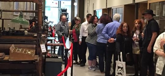 Mingling crowd and awesome devices at the American Bookbinders MuseumUsual moderator Terri Bisson had a last-minute engagement, and I was delighted that my friend Cliff Winnig took up the mic. Though I dunno how delighted Cliff was, as the Q&A consisted of of very long, convolute, though sometimes funny answers to maybe three question before we ran out of time. We’ll try to be the soul of brevity next, I swear.
