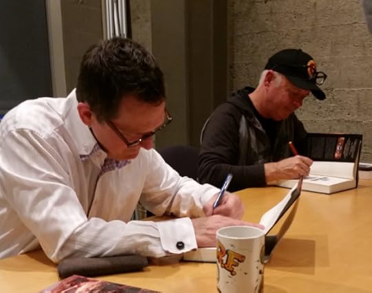 Ken has done a ton of signings — he used to draw Ninja Turtles, fer cryin’ in the sink — but this is his first book signing, and he was like a puppy. After our reading and Q&A, we started signing books. I was writing my name when I heard Ken beside me say, “Hey — this is the first book we’ve signed for someone!” (Hello, Uffe in Switzerland, who was awesome enough to special-order our novel!)