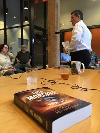 Yr. Humble Narrator, moderator Cliff Winnig, Ken MitchroneyKen and I read & spoke at the long-running SF in SF (Science Fiction in San Francisco) series last Sunday evening, and had one helluva time. It’s a terrific venue to read at, and the audience is always attentive, intelligence, responsive, and just plain fun to perform for.