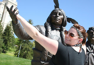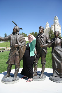 We stopped in Manti first, though, because we drove right through it. And how can anyone not see the Manti temple and not need to stop and take a picture? We spent some minutes taking pictures, dancing with the statues and playing in the fountain.